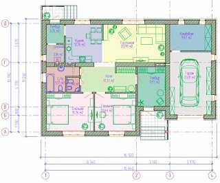 Проект одноэтажного трехкомнатного дома 68 кв.м