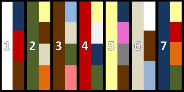 5 – Наилучшее сочетание цветов, 4 – достаточно хорошая комбинация, 3 – можно при правильной раскладке цвета, но лучше не рисковать, 2 – лучше данное сочетание не использовать.
