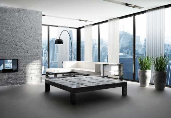 Панорамные окна предполагают интересный дизайн жилища. Прекрасным решением станет использование деревенского, классического или современного стиля в интерьере. Великолепные обзоры из окна дополнят природные материалы, такие как кирпич, древесина и дикий камень. Декорировать конструкции можно занавесками из полупрозрачных тканей.