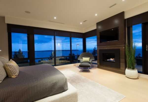 Панорамные окна не только украшают обстановку, но и невероятно смотрятся с улицы. Имеет смысл делать остекление на всю стену, только если за домом с большими окнами будет потрясающий вид.