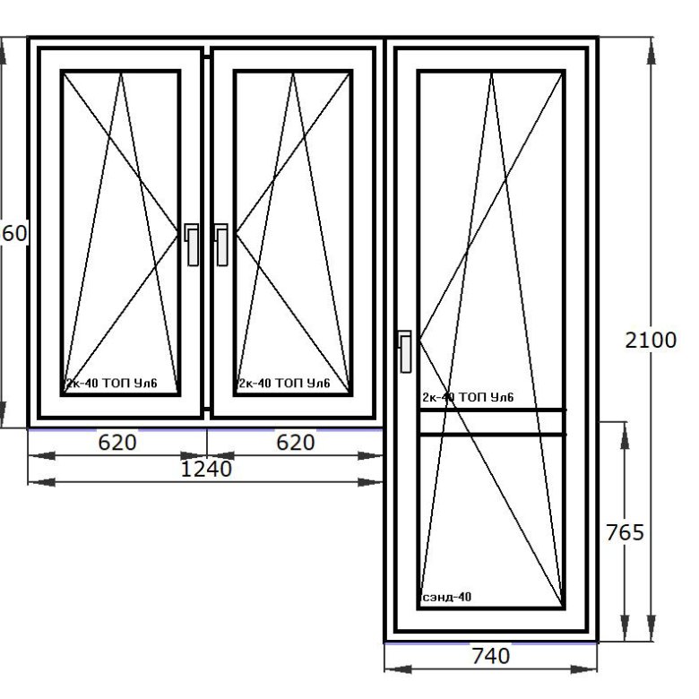 | Дверь на балкон | 2150×750, 2150×800 | 2150×750 | 2150×750, 2150×800 | 2100×750 |
