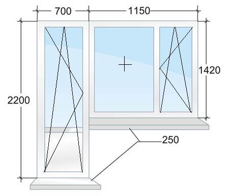 Стандартные размеры пластиковых окон в панельном доме в комнатах 208×142 см, на кухне — 147×142 см, на лоджии — 87×142 см. Дверной проем на лоджии имеет габариты 70×218см. - П-44Т — построены из более качественных стройматериалов. Здесь удобная планировка, большие квартиры, есть эркеры. Проемы в комнатах 146×142 см, кухонные — 116×142 см. Дверной блок 68×216 см. В 2-комнатных квартирах величина окна 94×142 и 94×142 см, в 3-комнатных 74×142, 230×14, 74×142 см.