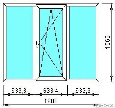 Помещения большой площади, поэтому оконные рамы оборудуются двумя или тремя створками. Их параметры: 1150*1950 или 1500*1900 мм в первом случае, 1700*1900 мм — во втором.