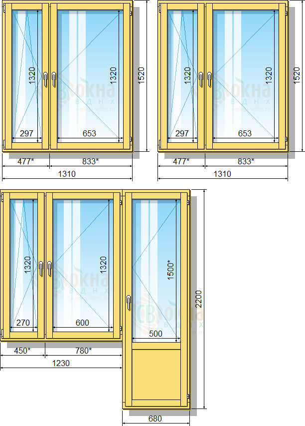 - двухстворчатые — 1460×1230 мм/152×1310 мм;