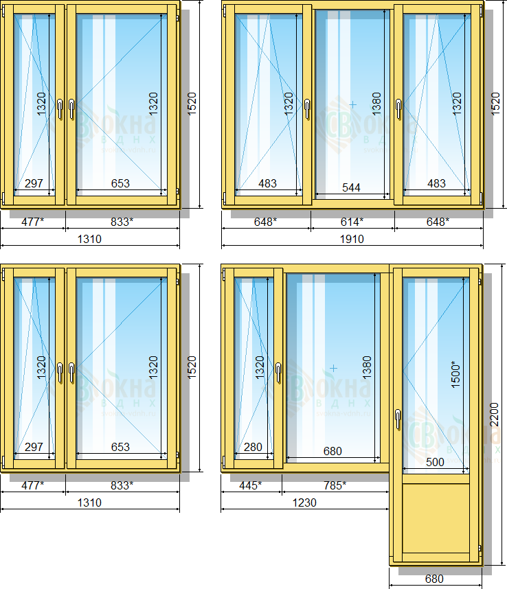 Двухстворчатое | 1400×1300 | 1400×1300 | 1400×1300 | 1900×1500, 1950×1500, 1800×1250 |
