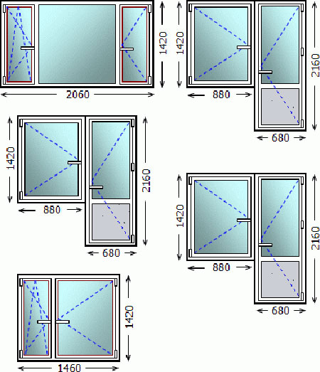 | Окно балконного блока | 1400×1050 1400×1460/1760 | 1400×1400 | 1400×1050 1400×1460/1760 | 600×1500 |