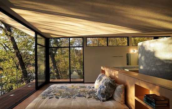 В спальне же обстановка другая – как правило, окна завешены плотными шторами, внутри комнаты царит интимная обстановка. Конечно же, бывают и исключения, например, если вы строите дом на фоне природы вдалеке от городского шума – в таком случае даже в спальной комнате можно поэкспериментировать с размерами окон. Но все же маленькие окна – оптимальный вариант, поскольку вы автоматически уменьшите теплопотери. Высота от пола до подоконника также не играет особой роли – обычно для спален это 90 см от пола.