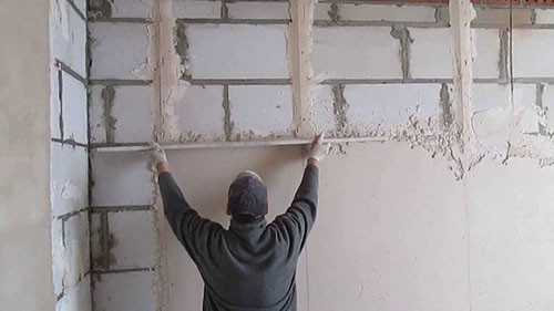 - Очистив стены от старых декоративных вещей, приступаем к штукатурке.
