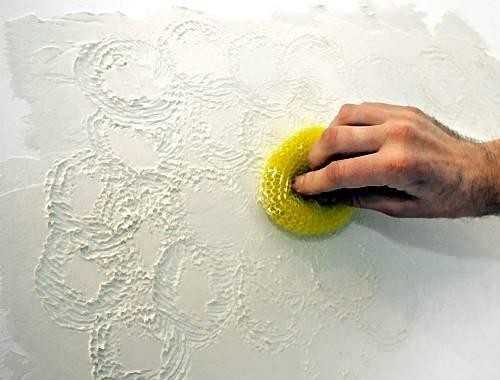 Еще вариант – обмакнуть в смесь веник, поднести поближе к стене и легонько стучать по нему палкой, чтобы мелкие брызги усеяли поверхность. Эта техника подробно описана в видео ниже: - Губкой – когда вы нанесли штукатурку ровным слоем, возьмите губку и слегка прижмите к стене, чтобы не оставалось пробелов (прикладывайте внахлест). Лучше брать губку из люфы (натуральную, а не синтетическую), чтобы получить более естественный и непредсказуемый отпечаток. Периодически промывайте губку в мыльной воде.