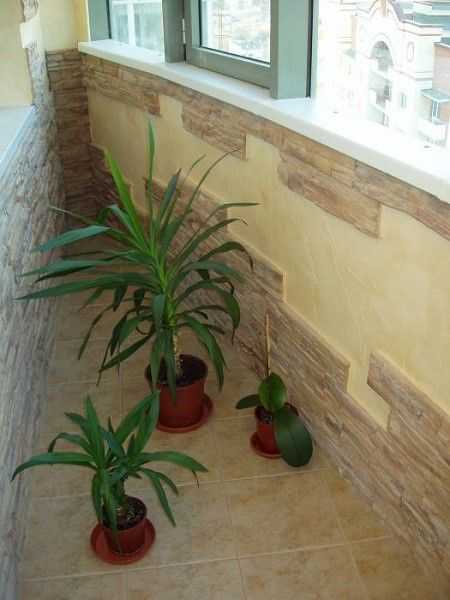 Отделка лоджий декоративной штукатуркой: фото комбинирования с искусственным камнем