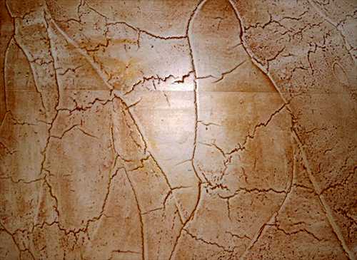 - Эффект «сухая земля» — очень красивый эффект, сделать который совсем несложно. Для этого надо подождать пока штукатурка чуть схватится, а потом вбить в нее деревянный шпунт, чтобы от него пошли трещины и образовались углубления.
