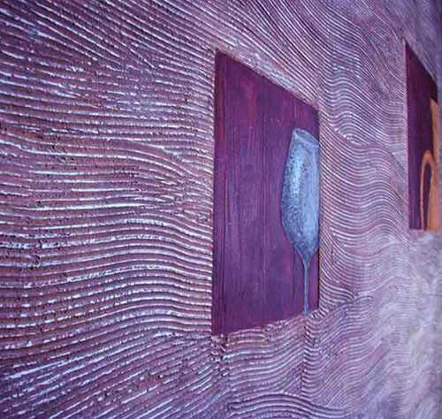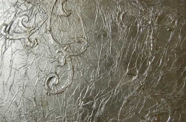 - фактурное покрытие, здесь при нанесении используются разные инструменты либо подручные материалы: губки, смятая бумага, можно формировать рисунок руками.