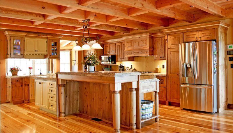 Самым востребованным элементом оформления, является кухонный гарнитур из натурального массива дерева.