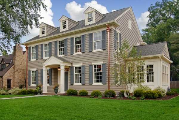 На вид похож на строительную доску. Фасады, отделанные сайдингом из винила, подходят практически к любому архитектурному стилю.