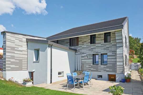 - Сайдинговые панели, которые характеризуются не только простотой и лёгкостью установки, но и ценовой доступностью. Такие панели позволяют фасаду дома легко вписываться в окружающий ландшафт благодаря натуральной цветовой гамме материала и фактуре, повторяющей различные природные.