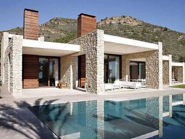 Во всем чувствуется минимализм, но нельзя пренебрегать и элементами статуса, такими как богатые перила лестниц, колонны и другие. Дизайн экстерьера внушает спокойствие, непоколебимую уверенность и приносит ощущение полного достатка его обладателя.