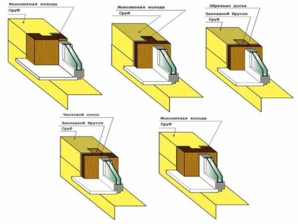 Сложная. Предполагает выпиливание специального выступа в проеме окна. Он служит основанием для заранее изготовленного П–образного бруска. Благодаря большой площади соприкосновения этого бруса с элементами стены, он способен выдержать большую нагрузку.