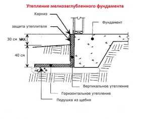 - Если используется мелкозаглубленный фундамент, уложенный выше отметки глубины промерзания грунта;
