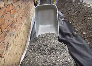 Подстилающий слой выполняется из материалов, которые плохо впитывают влагу и этим блокируют доступ разрушительной влаги к основанию постройки. Применяют песок, геотекстиль, глину, щебень мелкой фракции. Можно комбинировать эти материалы для усиления эффекта.