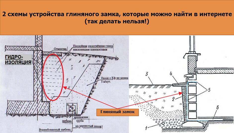 - Глиняная изоляция – удаление мусора и других сыпучих примесей, пустоты и верхний слой по периметру здания заполняется глиной. Места примыкания к дому нужно герметизировать дополнительно рулонными материалами.