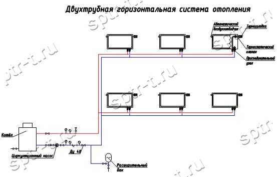 Второй вид – двухтрубный монтаж, принцип работы которого заключается в подачи теплоносителя из отдельной проведенной трубы в несколько радиаторов, после чего она также возвращается обратно в котел для повторного нагрева. Данный способ более затратный но, тем не менее, часто используется по ряду преимуществ. При решении установить отопление, многие пользуются такой услугой как монтаж отопления в частном доме «под ключ». Для владельца дома это дает некоторые преимущества: