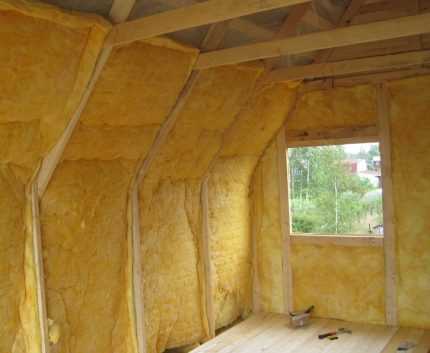 Простейший вариант – обшивка пенопластом. Также можно сделать в помещении фальшстену, уложив за нее минвату. Потолок утепляется со стороны чердака теми же материалами – минеральной ватой, пенопластом или пенополистиролом.