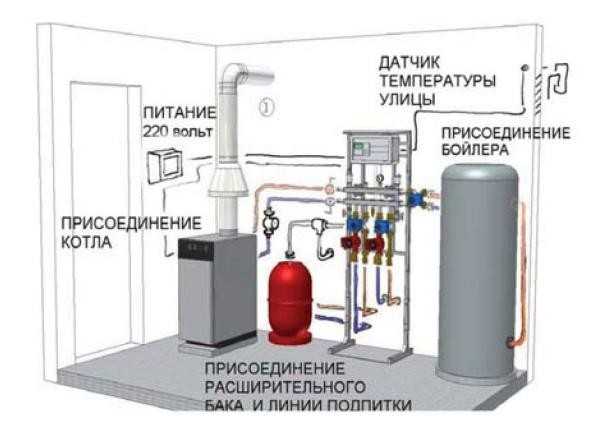 Основным преимуществом при этом будет то, что котел даст возможность не проводить подключение различных отопительных приборов в каждом помещении по отдельности, а значит, повысится и общая безопасность.