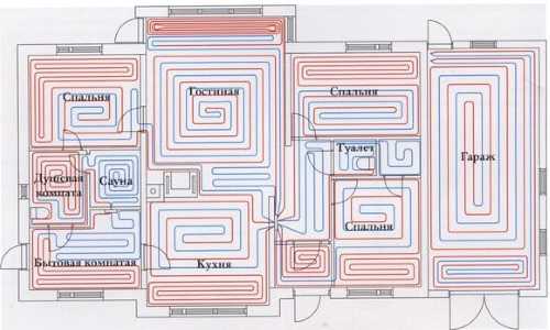 Разводка труб по периметру помещения является оптимальнойСоединение частей полипропиленовых труб осуществляется при условии их нагрева паечным аппаратом. В результате получается прочное и долговечное соединение всех элементов системы отопления.