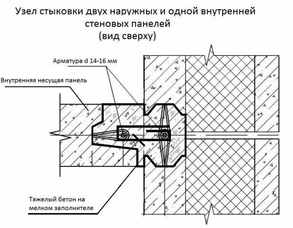 Места соединения панелей внутри дома (межпанельные швы) замоноличиваются бетоном при их монтаже. Угловые межпанельные швы имеют ширину всего 80-120 мм и выполняются в плоскости стен. А межпанельные швы линейных панелей мы проектируем и делаем в створе несущих стен или перегородок, для того чтобы их скрыть.