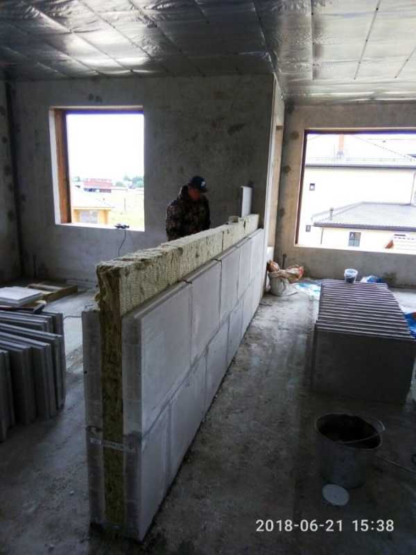 - сам блок не является одной плитой, он состоит из слоев, между слоев бетона укладывают материал, который создает хорошую звукоизоляцию и теплоизоляцию;