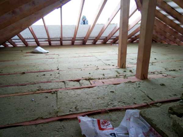 Снизу перекрытие подшивается пароизоляционной пленкой для предотвращения попадания влаги изнутри помещения в утеплитель.