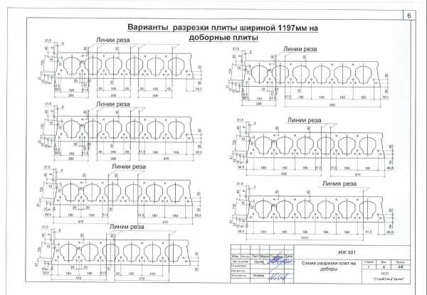 Помимо стандартной ширины, плиты ПБ могут быть разрезаны вдоль на доборные плиты (размерами 290, 470, 650, 830, 1010 мм). Кроме того, плиты ПБ могут быть разрезаны по диагонали без потери несущей способности.