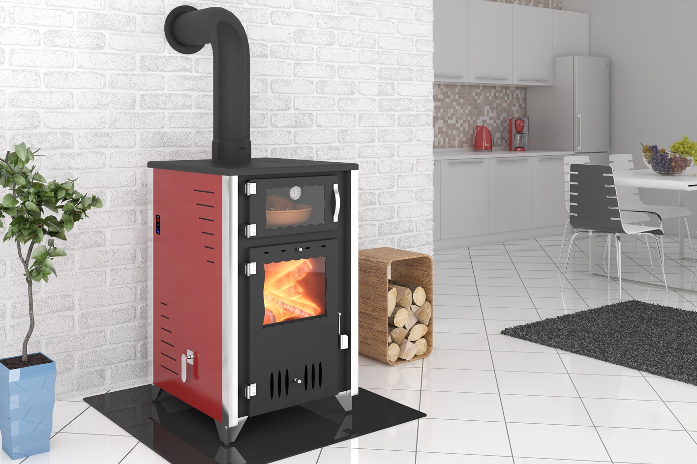 Печь можно без затруднений переставить в другое место в помещении - Доступность топлива и универсальность. В наших широтах дрова стоят не очень дорого, в случае необходимости, их можно заменить на другую разновидность твердых носителей, например, уголь.