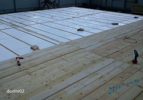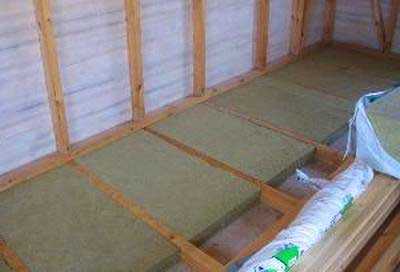 Для этой цели используют планки сечением 30х50 мм. И на них кладут щиты наката: материал листовой или доски, способны выдерживать вес слоя изоляции.