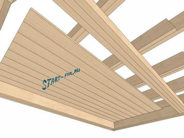 После монтажных работ и закрепления балок для потолка на них сверху устраивается настил, а снизу — подшивка.