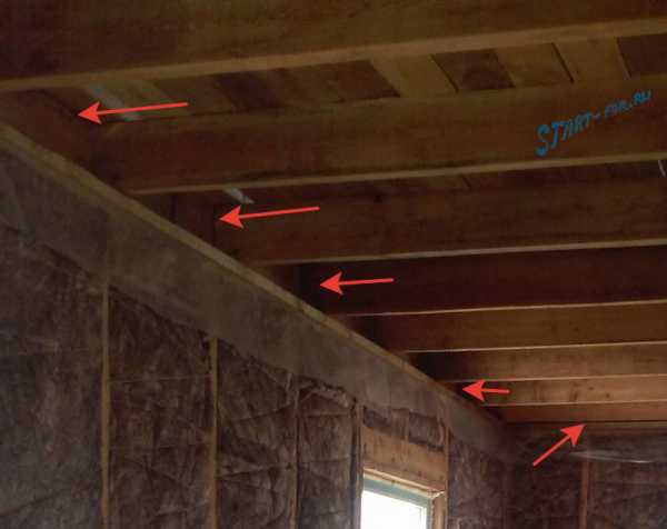 Снизу потолочных перекрывающих балок на всю длину с боковых сторон набивают черепные бруски.