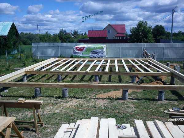 Разложить балки необходимо именно в том порядке в котором они будут прибиваться, и сразу все. Не стоит бегать за каждой доской по отдельности, времени убьете много, силы потратите зря.