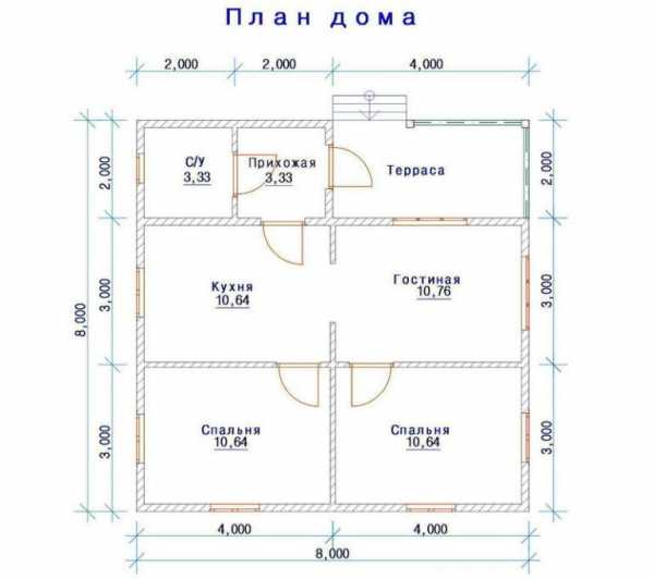 ΠΡΠΎΠ΅ΠΊΡ ΠΎΠ΄Π½ΠΎΡΡΠ°ΠΆΠ½ΠΎΠ³ΠΎ Π΄ΠΎΠΌΠ° ΠΈΠ· ΠΏΠ΅Π½ΠΎΠ±Π»ΠΎΠΊΠΎΠ² 8 Π½Π° 8