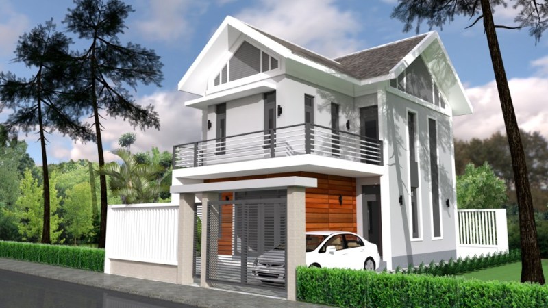 Двухэтажный современный дом, представленный сегодня, имеет от 4 до 5 спален, 4 туалета и ванну, общей площадью 255 квадратных метров. Можно построить на участке площадью 272 квадратных метра с минимум 19 кв.Ширина фасада 7 метров, длина 13,8 метра. Минимальные требования к отступлению для этого двухэтажного современного дома площадью 2 метра с обеих сторон и сзади и 3 метра спереди.