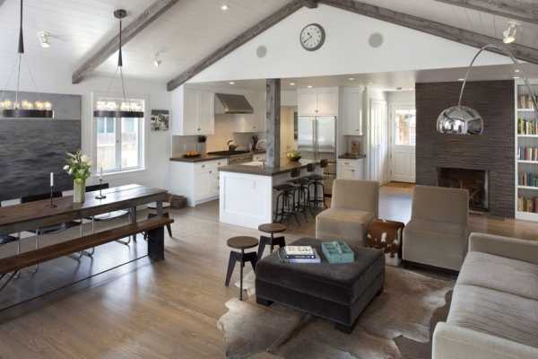 Если убрать внутренние перегородки, объединив кухню, столовую и гостиную, это визуально раздвинет внутреннее пространство небольшого по размерам дома