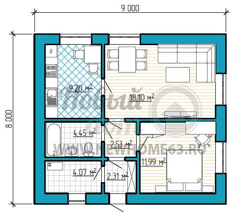 Варианты планировки одноэтажного дома 9 на 9 м