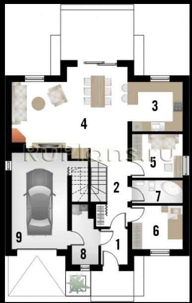 Планировка первого этажа дома 8 на 10