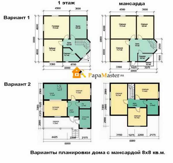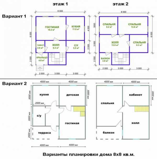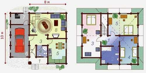Варианты планировки дома 8х8 кв. м.