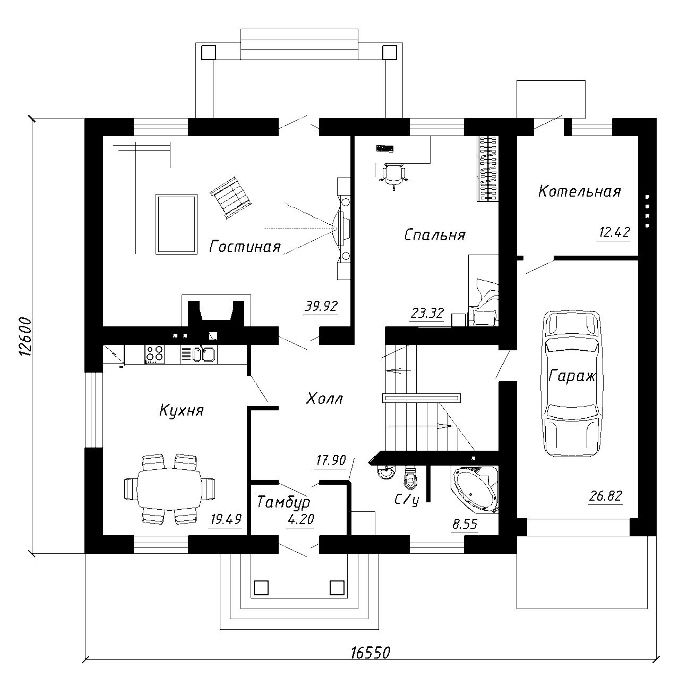Проекты домов 12х12 с гаражом: фото, планировки и чертежи