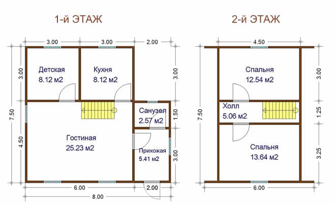 Планировка дома 8 на 6 двухэтажный: Проекты домов и коттеджей 6 на 8 (6х8)