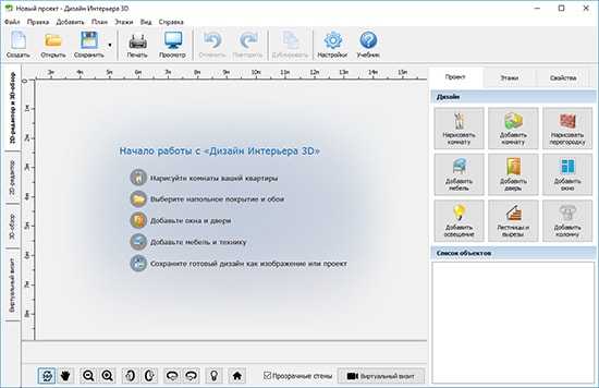 Если вы никак не можете определиться с тем, какие функции раздать помещениям в новоприобретенном доме, то на помощь придет программа «Дизайн Интерьера 3D». Установив софт на ПК, вы сможете воссоздать точный виртуальный аналог своего жилища: для быстроного начала работы вам нужно лишь отсканировать готовый план дома, а затем просто загрузить его в программу.