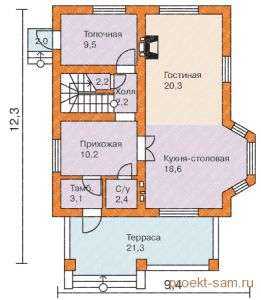 Планировка одноэтажного дома с мансардой 9?12