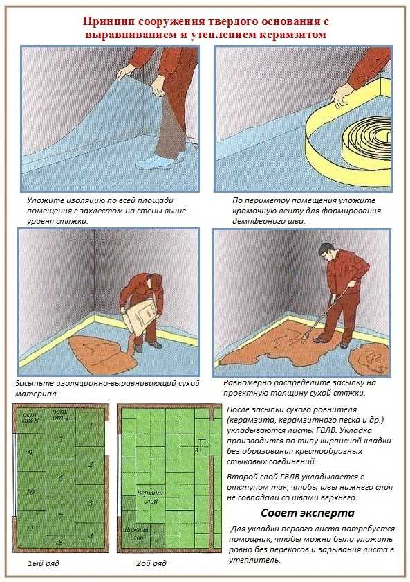 Π ΠΏΠ΅ΡΠ²ΡΡ ΠΎΡΠ΅ΡΠ΅Π΄Ρ ΠΏΠΎΠ·Π°Π±ΠΎΡΡΡΠ΅ΡΡ ΠΎ Π½Π°ΠΏΠΎΠ»ΡΠ½ΠΎΠΌ ΠΏΠΎΠΊΡΡΡΠΈΠΈ. Π Π°ΡΡΠΌΠΎΡΡΠΈΠΌ ΠΏΠΎΠ΄ΡΠΎΠ±Π½ΠΎ Π½Π°ΠΊΠ»Π΅ΠΉΠΊΡ ΠΏΠ»ΠΈΡΠΊΠΈ ΠΊ Π΄Π΅ΡΠ΅Π²ΡΠ½Π½ΠΎΠΉ ΠΏΠΎΠ²Π΅ΡΡ Π½ΠΎΡΡΠΈ. Π Π΅ΠΊΠΎΠΌΠ΅Π½Π΄ΡΠ΅ΡΡΡ ΠΏΠΎΠΌΠΈΠΌΠΎ ΡΠ°Π½Π΅ΡΠ½ΠΎΠ³ΠΎ Π½Π°ΡΡΠΈΠ»Π° ΠΏΡΠΎΠΈΠ·Π²Π΅ΡΡΠΈ ΡΡΡΠΆΠΊΡ, ΠΏΡΠ΅Π΄Π²Π°ΡΠΈΡΠ΅Π»ΡΠ½ΠΎ ΠΎΠ±Π΅ΡΠΏΠ΅ΡΠΈΠ² Π³ΠΈΠ΄ΡΠΎΠΈΠ·ΠΎΠ»ΡΡΠΈΡ ΠΏΠΎΠ»Π°. Π§ΡΠΎΠ±Ρ Π·Π°ΠΊΡΡΡΡ ΡΡΡΠΊΠΈ ΠΈ ΡΠ΅Π»ΠΈ, Π½ΠΎ ΡΠΎΡ ΡΠ°Π½ΠΈΡΡ Π²ΠΎΠ·ΠΌΠΎΠΆΠ½ΠΎΡΡΡ Π΄Π²ΠΈΠΆΠ΅Π½ΠΈΡ Π½Π°ΡΡΠΈΠ»Π° ΠΏΡΠΈ ΠΈΠ·ΠΌΠ΅Π½Π΅Π½ΠΈΠΈ ΡΡΠ»ΠΎΠ²ΠΈΠΉ, ΡΠ΅ΠΊΠΎΠΌΠ΅Π½Π΄ΡΠ΅ΡΡΡ ΠΈΡΠΏΠΎΠ»ΡΠ·ΠΎΠ²Π°ΡΡ ΠΌΠΎΠ½ΡΠ°ΠΆΠ½ΡΡ ΠΏΠ΅Π½Ρ, ΠΎΠ½Π° ΠΏΠΎΡΠ»ΡΠΆΠΈΡ ΡΠ²ΠΎΠ΅ΠΎΠ±ΡΠ°Π·Π½ΡΠΌ ΠΊΠΎΠΌΠΏΠ΅Π½ΡΠ°ΡΠΎΡΠΎΠΌ. ΠΠΎΠ²Π΅ΡΡ ΠΎΡΠ½ΠΎΠ²Π°Π½ΠΈΡ Π΄ΠΎΠΏΠΎΠ»Π½ΠΈΡΠ΅Π»ΡΠ½ΠΎ ΡΠ°ΡΡΡΠΈΠ»Π°ΡΡ ΠΌΠ΅ΠΌΠ±ΡΠ°Π½Π½ΡΡ ΠΏΠΎΠ»ΠΈΠΌΠ΅ΡΠ½ΡΡ Π³ΠΈΠ΄ΡΠΎΠΈΠ·ΠΎΠ»ΡΡΠΈΡ. ΠΡΡΠ΅Π·ΠΊΠΈ ΠΌΠ°ΡΠ΅ΡΠΈΠ°Π»Π° ΡΠΊΠ»Π°Π΄ΡΠ²Π°ΡΡΡΡ Π²Π½Π°Ρ Π»Π΅ΡΡ ΠΈ ΡΠΊΡΠ΅ΠΏΠ»ΡΡΡΡΡ ΠΌΠ΅ΠΆΠ΄Ρ ΡΠΎΠ±ΠΎΠΉ Π»ΠΈΠΏΠΊΠΎΠΉ Π»Π΅Π½ΡΠΎΠΉ.