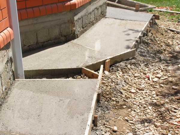 - Затем в опалубку заливается бетон и тщательно выравнивается.