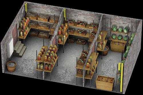 Устройство погреба под домом зависит от ваших индивидуальных предпочтений. Полки располагайте около стен, обеспечив их стационарное крепление. Количество и размеры полок зависят от объема продуктов, которые вы планируете хранить в погребе.